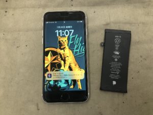 iPhone 7/7+/8/8+/SE2/SE3のバッテリーがもたない😱30分~1時間程でサクッと交換です👍料金は5000円(作業代+部品代+消費税込)ですよ👏お問合せ 0